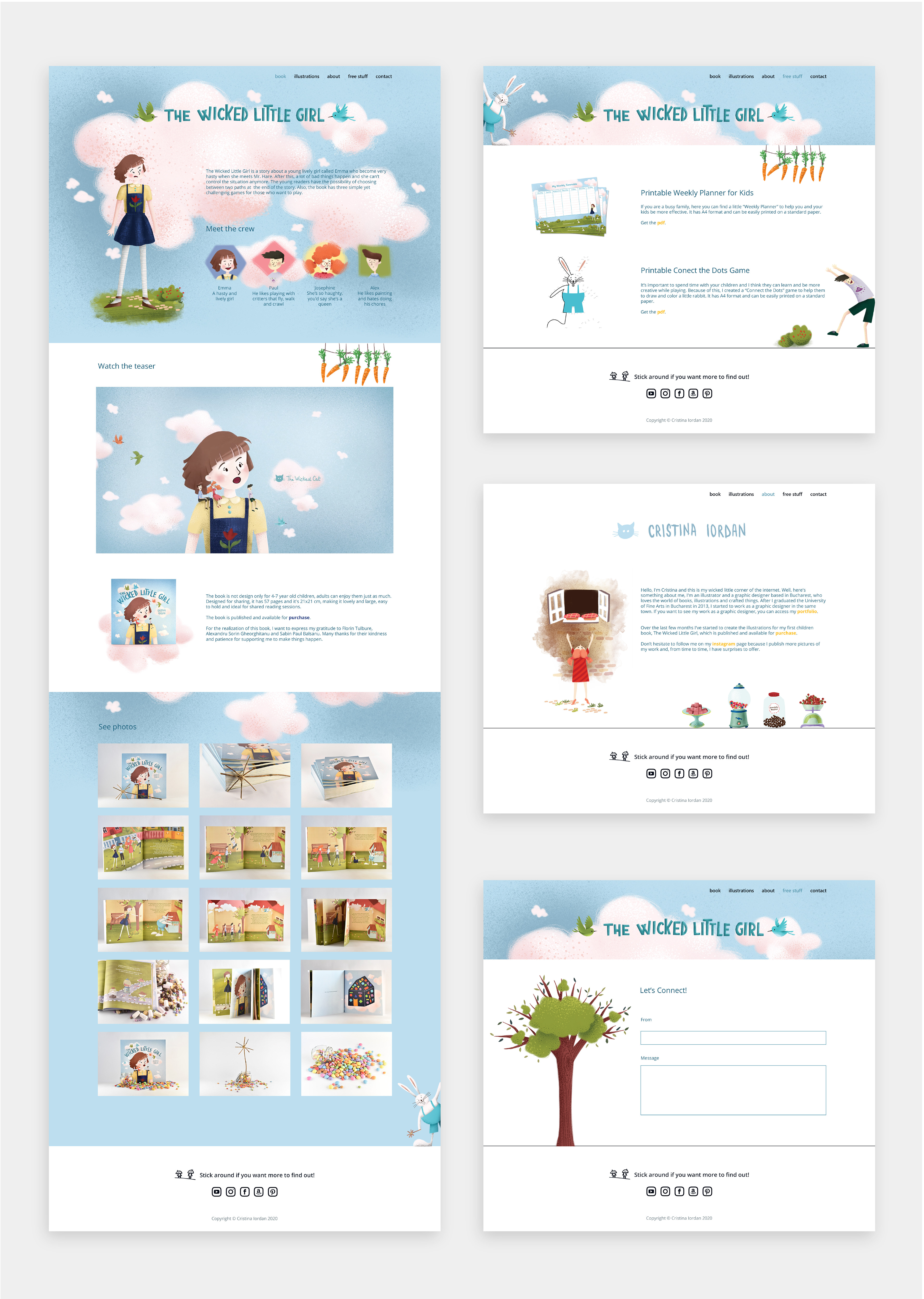 To share this story more widely, I also designed and build a dedicated website using HTML and CSS, where readers can explore behind the scene art, meet the characters and discover fun activities inspired by the book. Alongside the site, I launched social media pages and an "read aloud" video to connect with families, educators and fellow creators.